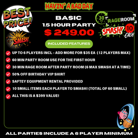 ✅ Up to 6 players included (add more for $35 each, max 12 – 6 smashing at a time)
